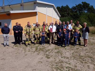 Das jetzige Gerätehaus ist über 100 Jahre alt und entspricht nicht mehr den Anforderungen an eine moderne Feuerwehr. Der Neubau mit Umkleideräumen, Sanitär- und Sozialräumen sowie einem Raum für Unterbringung von Gerät und Material bekommt zwei Stellplätze für Einsatzfahrzeuge.Das Land Mecklenburg-Vorpommern überreichte einen Bescheid für Unterstützungsmittel in Höhe von 290.000,- €. Nun können endlich die Ausschreibungen und Auftragsvergaben erfolgen, Planer und Architekt Herr Volker Uebe (Palingen) hofft das dass die ersten Bautätigen bereits im September/Oktober 2018 erfolgen können