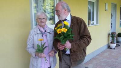 Vera Capraro, 81 Jahre, war wie in den vergangenen Jahren nicht so sehr überrascht, als zum Muttertag - gerade als sie mit Ihrem Mann Werner Capraro, 85 Jahre, von ihrer Tochter zum Muttertags-Mittagessen abgeholt werden sollte - der Bürgermeister der Gemeinde Lüdersdorf, Erhard Huzel (CDU) mit einem persönlichen Blumengruß noch bei ihr klingelte und ihr auch namens der CDU Lüdersdorf zum Muttertag alles Gute wünschte. Diese Blumenaktionen zum Muttertag führt Bürgermeister Erhard Huzel schon seit seinem Amtsantritt 2001 durch, nicht nur bei allen Bewohnern der Anlage 'Betreutes Wohnen' in Herrnburg, Bahnhofstraße, sondern auch im Altenpflegezentrum 'Haus am Brink' im Ortsteils Wahrsow. Auch alle Mitarbeiterinnen des Pflegezentrums konnten sich über einen Blumengruß des Bürgermeisters freuen - manche von ihnen sichtlich überrascht über diese persönliche Geste.